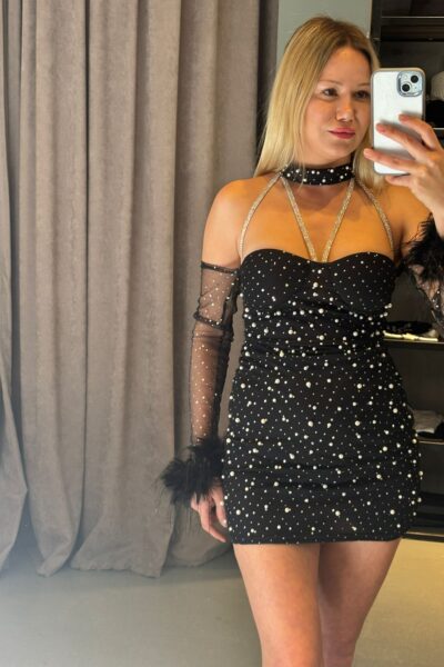 ₺2.099,00Boyundan Bağlamalı İncili Elbise