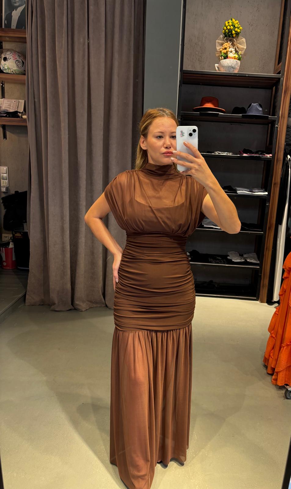 Boğazlı Drepeli Elbise