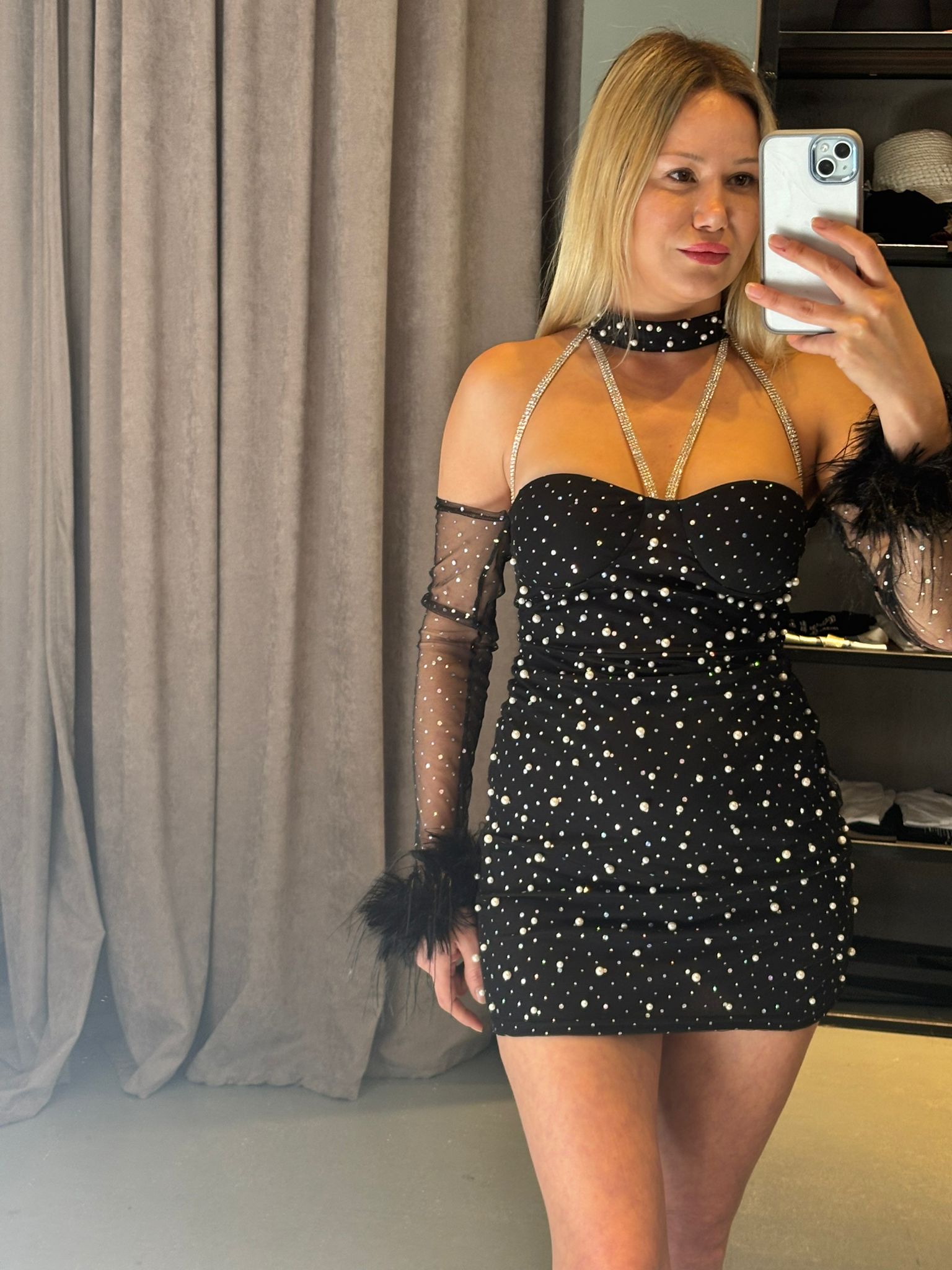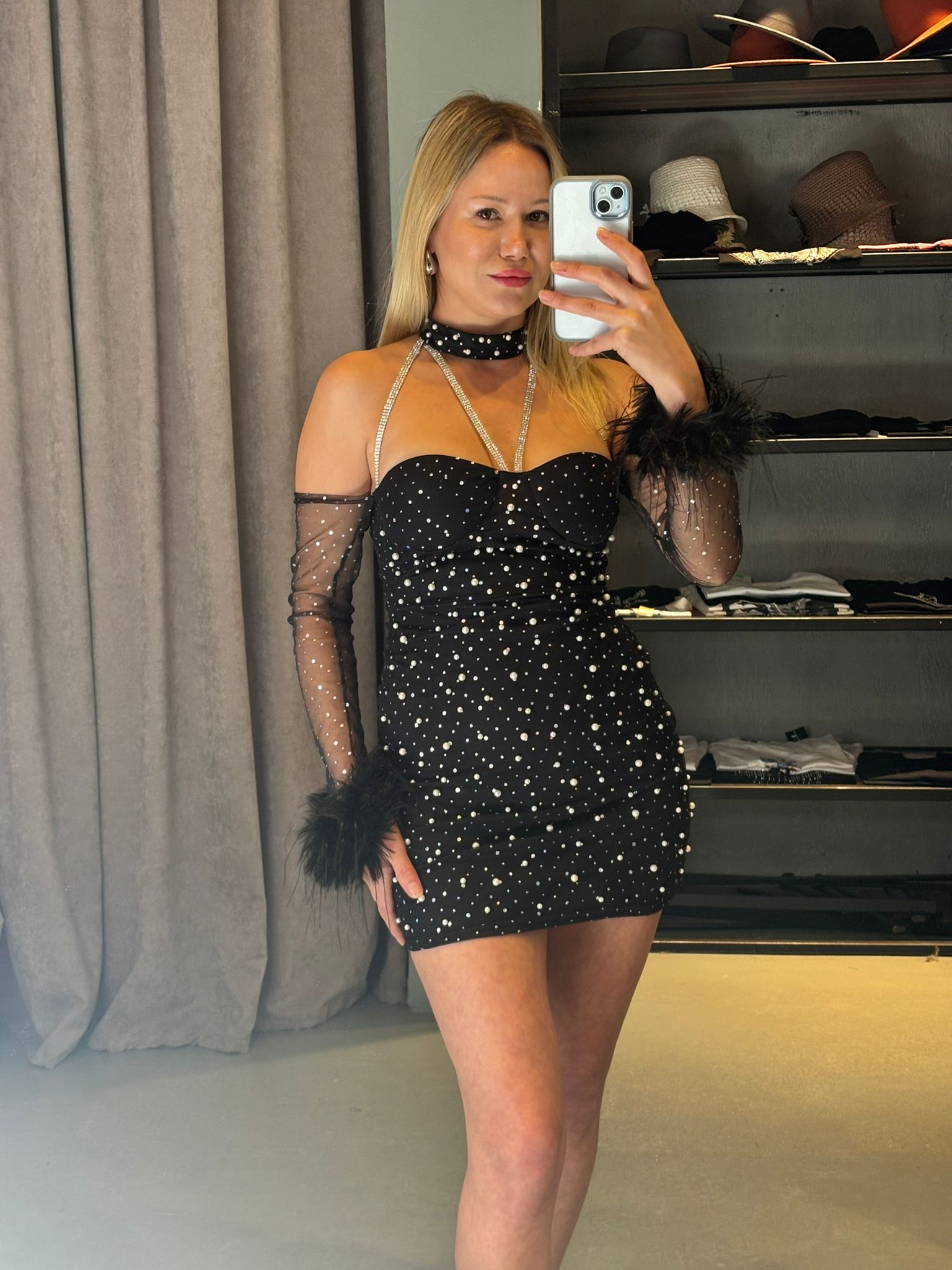 Boyundan Bağlamalı İncili Elbise